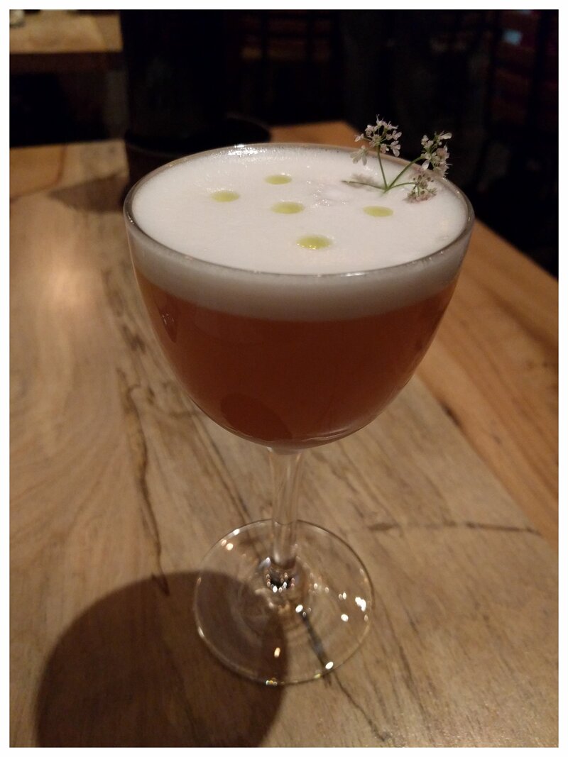 I ordered a ‘Kentucky Mule’ because the menu had an assortment of ‘Mules’ on it, and I happened to know that the one with Bourbon is called that. This did not go over well, and I got a blank look from our server and a reprimand from Erin! However when the dust settled the drink itself was quite nice. It had a light froth on top, and the acid element was well balanced with the generous dose of Bourbon. You win this round, Bonhomie!